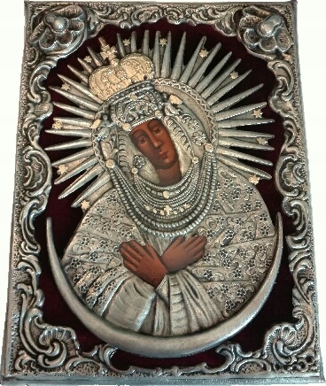 Na ikonie znajduje się wizerunek matki bożej ostrobramskiej. . Matka boska ostrobramska, ta o której adam mickiewicz pisał: